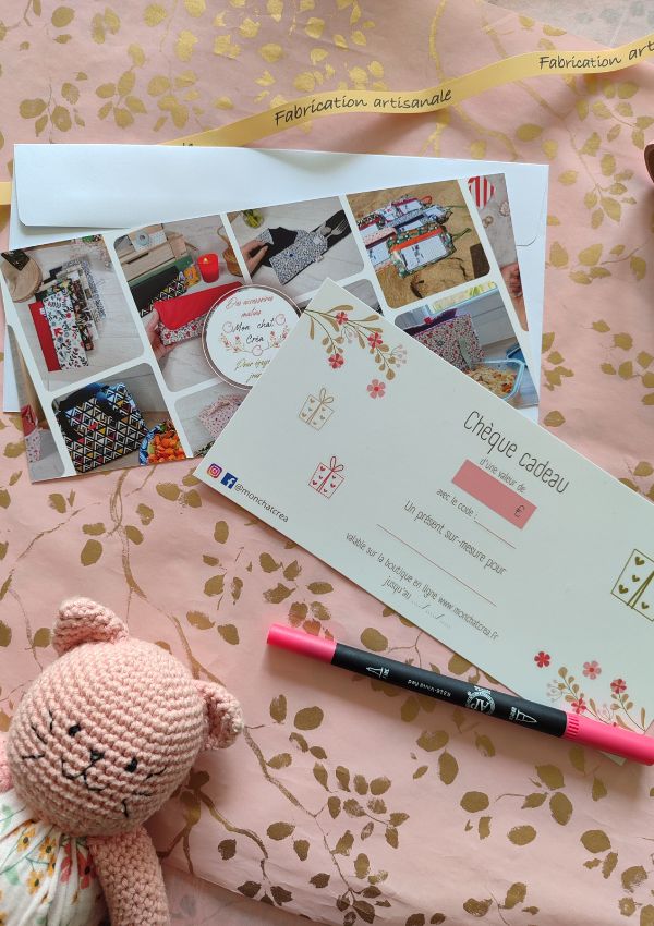 Une fois votre commande effectuée, vous recevrez une carte cadeau par courrier avec un code personnalisé à utiliser sur le site www.monchatcrea.fr pour bénéficiez de l’argent mis sur la carte.